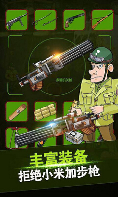 游戏中的兵种众多,如:手枪手、敢死队员、毒气兵、燃烧投弹手、狙击手、工程师军医、重机枪手等等。初期,游戏会给玩家提供手枪手和步枪手,后期的众多兵种都需要玩家花费一定的钻石来解锁。游戏并没有固定的兵种搭配方法,玩家可以根据自己对游戏的理解来搭配使用不同的兵种,游戏侧重玩家的策略性。此外,游戏中的兵种都是可以进行升级的,这就更加让游戏在后期可以衍生出多种玩法。不同的兵种搭配,不同的升级重点可以让玩家在游戏中搭配出不同效果的组合,从而使得游戏趣味性变得更强。