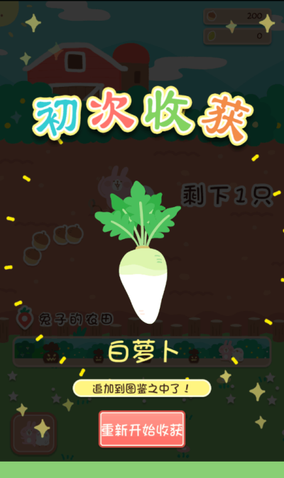 Usagi最近迷上了农园游戏。能採收自己亲手种的蔬菜,这是一件多么快乐的事呀。对了,实际种种看蔬菜说不定会更快乐….!Usagi一开始先种了芜菁。芜菁休休的长大了。后续就待游戏里揭晓!