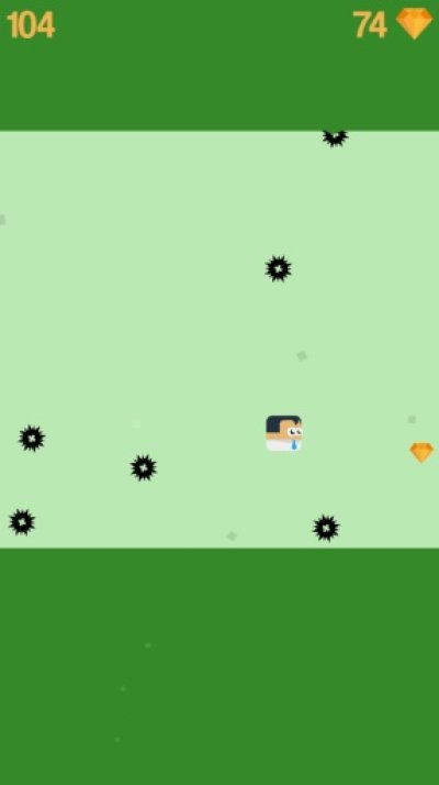 游戏中,玩家要操作一个小人在屏幕中奔跑跳跃,躲避从天而降的尖刺飞镖。本作的操作很容易上手,点击屏幕左侧可以让小人跳跃,点击屏幕右侧则可以让小人折返跑动方向。
