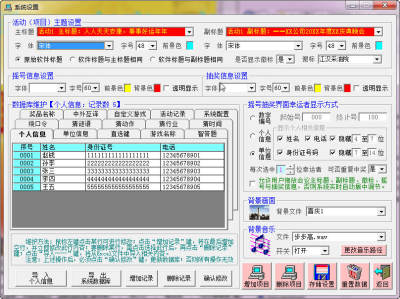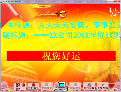1、在摇号功能方面,既可以采用名称方式,即参与摇号的个人信息(包括姓名、身份证号、电话或QQ号与微信号等一切个人信息)或单位信息进行摇号,也可采用(不超过六位的)数字编号方式进行摇号 。每次摇号可一次摇出1~10个名称或号码(在“系统设置”界面,设置每次摇号可选中的幸运者数量),并可根据节日和行业特点选择相应的背景图片与背景音乐。