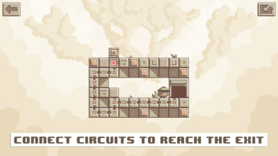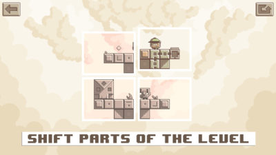 游戏画面为像素风,配色比较清新,人设萌萌哒。在游戏中,玩家通过交换场景地图碎片,拼凑路径,让电子门通电外,还需要自己适时的点击屏幕带动小人儿左挪右移、爬梯推箱,使得小人能够平安跑到开启的电子门里面去才算通关。目前它的关卡并不多,但关关精悍。感兴趣的玩家不妨挑战一番!