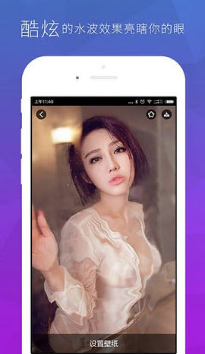 装机必备,高清壁纸大全,分类完善,各种唯美、创意、美女壁纸所意挑选更换;最最最大的亮点是水纹效果,只要指尖轻轻滑动,滴滴水珠,层层涟漪,让人一整天的心情都是美美哒。赶紧试试吧~