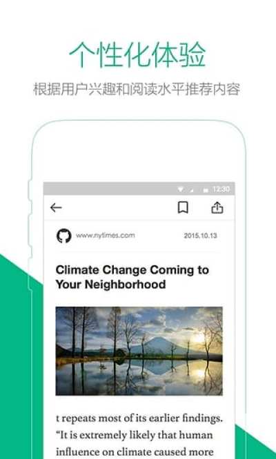 3. 个性化体验,基于大数据技术的个性化推荐,甄选适合你的英语水平和兴趣的内容,使阅读英文轻松有趣。