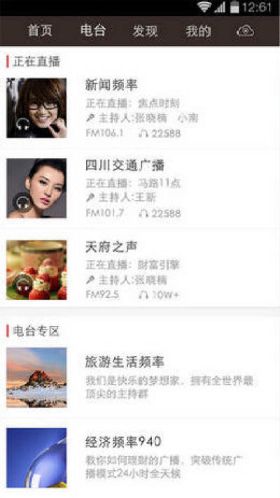 听听是四川广播电台app应用,包括:新闻、交通、经济、岷江音乐、城市之音、旅游生活、文艺、天府之声等节目,各频率开办的主打栏目《娇子川广风云榜》《音乐红人馆》《乐活达人》《食尚玩家》,四川麻辣特色的《友言友味》等节目深受听众朋友的喜爱。四川广播能让你在繁忙的上下班路上,拥挤的地铁公交车上,享受到属于你自己的一片温情恬静天地。