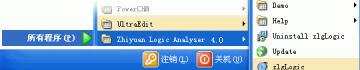 (2) 在Windows“开始”按钮下的程序集内有Zhiyuan Logic Analyser 4.0的选项,将鼠标光标移到此选项后可看到zlgLogic的应用程序的图标,点击此图标项即可开启zlgLogic的主程序。
