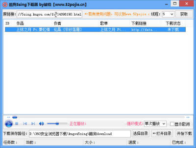 5sing是一个大型的音乐原创基地,每天都有很多歌手发布上传自己的原创或翻唱歌曲,古风、流行等种类齐全,总有一款你喜欢的;酷狗5sing音乐链接解析器就是一款可以帮助用户快速解析和下载5sing上音乐的辅助工具。