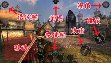 手指放在左下角任意位置就会出现一个虚拟摇杆,拖动虚拟摇杆就可以控制人物移动。向前拖动不放就可以跑。向其他方向拖动,人物的移动速度就会慢下来。在向左或向右移动时点击右侧的跳跃,人物就会做出闪躲动作。在屏幕右侧滑动,就可以更换人物的视觉范围,但拖动的敏感度太低,会觉得不顺手。玩家可以去设置中把敏感度调高,让移动和视觉范围更灵活。
