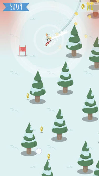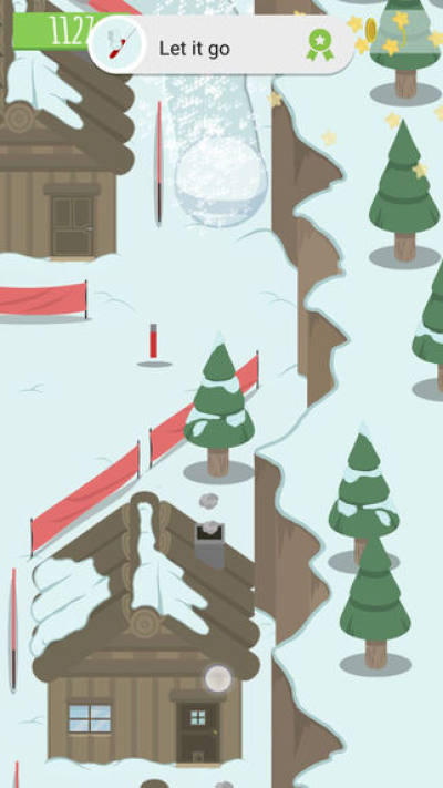 《无尽的雪崩》(Avalanching)是一款在雪崩中逃生的敏捷游戏,游戏中,由雪崩带来的大量积雪正向上下呼啸而来,为了帮助角色逃离灾难,玩家通过按住并滑动屏幕控制角色从上至下的运动方向。由于人物身后有疾驰而来的积雪,考虑到玩家在游戏时注意力比较集中,手指在滑动过程中容易操作失误,因此,游戏有一个很科学的设定:只有当手指按在屏幕上时,人物才会运动,否则游戏自动进入暂停状态。