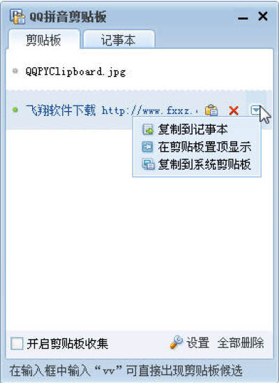 QQ拼音剪贴板是一款从QQ拼音中分离出来的剪贴板工具,可以帮助用户同时保存多个文字、图片、文件等内容,使用时选择剪切板内容即可进行复制操作,非常简单实用,需要的朋友可以下载体验一下。