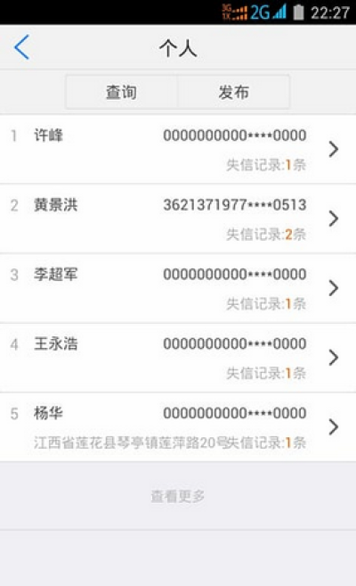 《咚咚信息》是一款专门收集记录各种不诚信行为与免费发布寻找失踪人员的APP软件,能充分发挥互连网的优势,迅速让每一位《咚咚》用户掌握了解到各种最新的失信人员与欺诈行为,避免自己的损失,除非受害者谅解并撤销不良记录,否则就会永远记录在册,能永久的警告后者提防上当受骗,能从根本上打击各种不诚信行为.