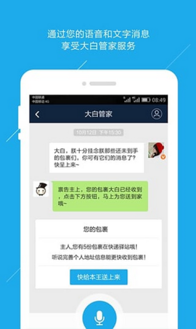 大白管家是一款小区私人生活助手,它能为您解决社区内衣食住行四大问题,您可以通过文字、图片甚至是语音随时随地联系您私人专属的大白管家,为您解决生活上的各种难题。一个应用购买百种服务,一键上门解决繁琐家务;统一管理,标准服务,客户至上,直至满意。