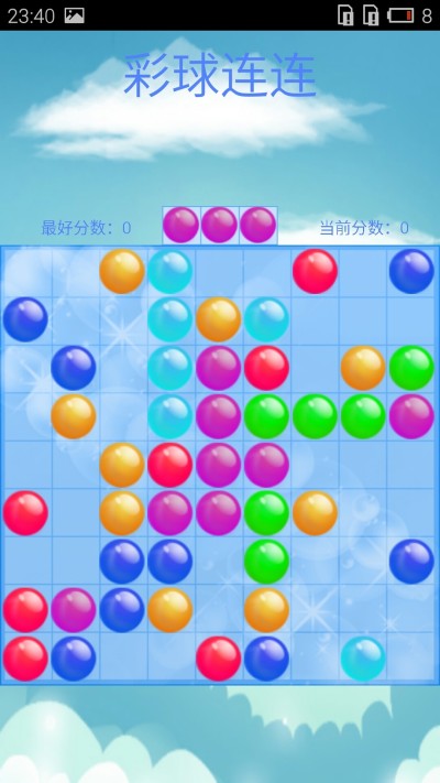 1、主要锻炼儿童的反应和思考能力2、游戏中每走一步,都会随机增加障碍物,只有当五颗一样的彩珠在横,竖,或者斜对角一条线时候,才会消除,计分