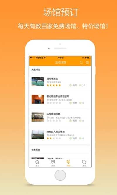 每天有数百家免费场馆、特价场馆!场馆的详细介绍、本周预定、咨询电话、场馆服务类别一目了然!