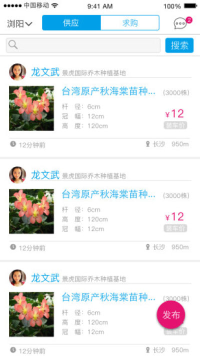 2、根据当前位置获取最新苗木供求数据