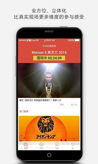 “好看Live”是首款专注于全球热门文化演出活动的体验式移动入口,在这里,除了发现精彩演出项目,还可以对演出现场进行实时在线围观及精彩浏览回看!不管你喜欢摇滚、话剧音乐剧、流行偶像演唱会、舞蹈、复古市集或者户外狂欢节……有了“好看Live”,即刻通往全球精彩演出现场!