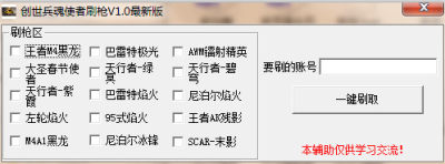 创世兵魂使者刷枪软件,主要可帮助玩家免费刷取大量的牛逼枪支,包括王者M4黑龙、巴雷特极光、AWM镭射精英等等,有需要的朋友可以下载使用。