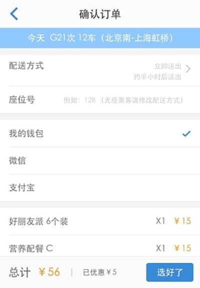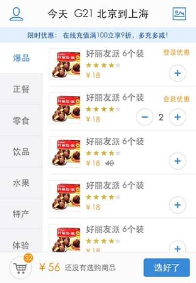 动车高铁点餐,影院,充值;用户坐火车期间,可以享受在线点餐,免费看电影,充值后享受不同折扣的优惠;用户也可以提前预约点餐,方便乘客旅途与出行。