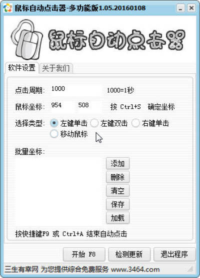 鼠标自动点击器是一款绿色小巧的鼠标自动连点工具;可帮助用户轻松实现鼠标重复性点击,可自定义选择左键右键、单机双击,且可自定义设置点击周期和坐标,解放你的双手,更加方便。