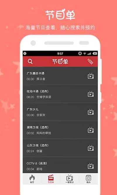 【节目单】海量节目单查看,随心搜索并预约你喜欢的电视节目,一键切换电视频道。