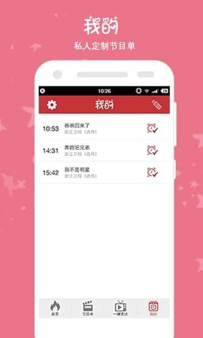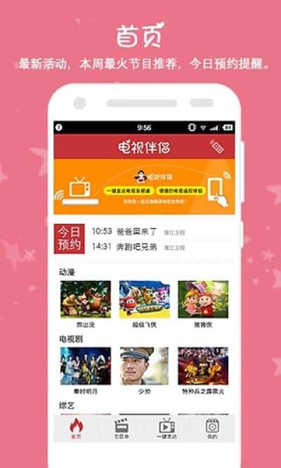 【首页】 最火活动,本周热播节目推荐,今日预约提醒。