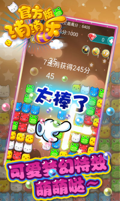 清新美丽的画面,让你眼前一亮!各种萌萌萌到爆的小Q宠,排队等你来!简单的游戏规则,轻松的趣味关卡,1分钟即可上手。