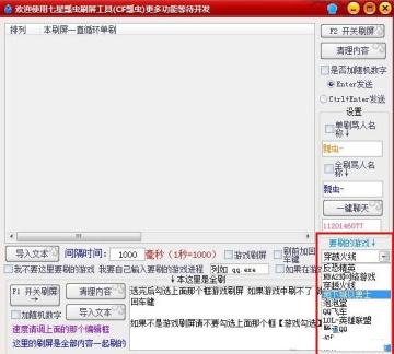 七星瓢虫刷屏工具,多款软件和游戏刷屏,如CF,lol、qq飞车等,支持批量导入功能,非常方便,有需要的朋友可以下载使用。