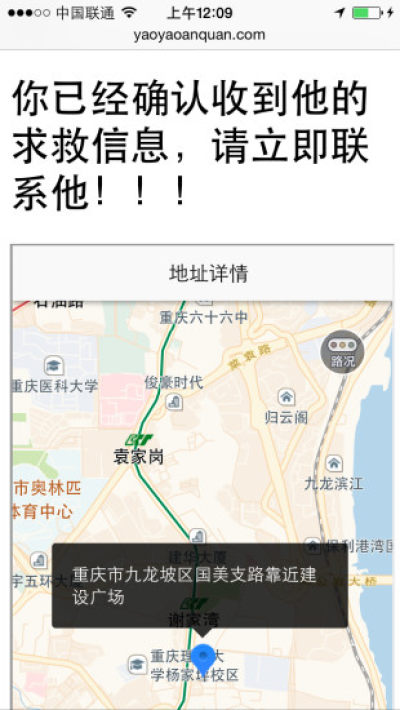 1.打开APP或者甚至可以在待机情况下,通过晃动手机(或者按下相应首页按钮),将自己的地理位置,周边情况 依次发给最亲密的人,直到他们任何人确定看到这个消息为止.