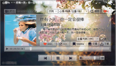 最近看到很多好友都在用心理Fm这个手机软件,对于经常面对电脑的人来说不太适合,还好有这个心理Fm电脑版,它的每一首fm都有单独的底图和特定的封面,用起来非常的不错。