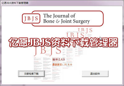 “亿愿JBJS资料下载管理器”专业下载和管理 JBJS.org 网站和bjj.boneandjoint.org.uk 网站的英文骨科资料,可以让您节省大量的时间和精力,让您把时间花在科研上。亿愿JBJS资料下载管理器(YYJBJSDown)的作用就是针对JBJS.org网站和bjj.boneandjoint.org.uk 网站,批量下载检索到的英文资料,过滤掉不需要的文章,资料格式是PDF全文,软件保存的文件名都是文章的名称,适合于收集与自己的科研领域相关的资料,分类存放,大大节约下载的时间,给离线浏览PDF文件提供了很大的方便。
