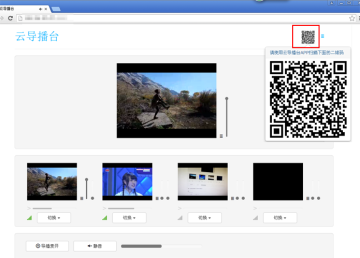 扫描的二维码在您PC端的控制台云导播台服务页,点击页面右上角的二维码弹出可使用APP扫码的二维码: