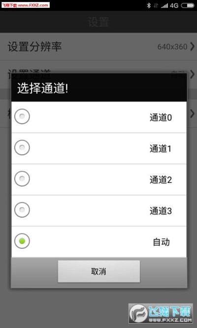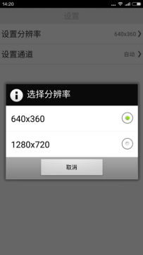 6、设置按钮:点击进入设置界面,可设置发布的分辨率和发布通道选择;