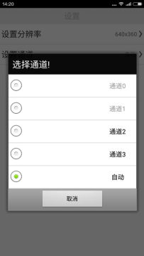 点击设置按钮进入设置界面,可设置发布的分辨率和发布通道选择,设置内容如下:
