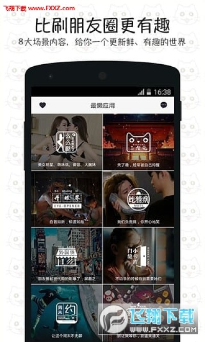 最懒应用APP是一个比刷朋友圈更加有趣的资讯阅读类手机软件,八大场景内容,给你带来更加新鲜、有趣的世界。
