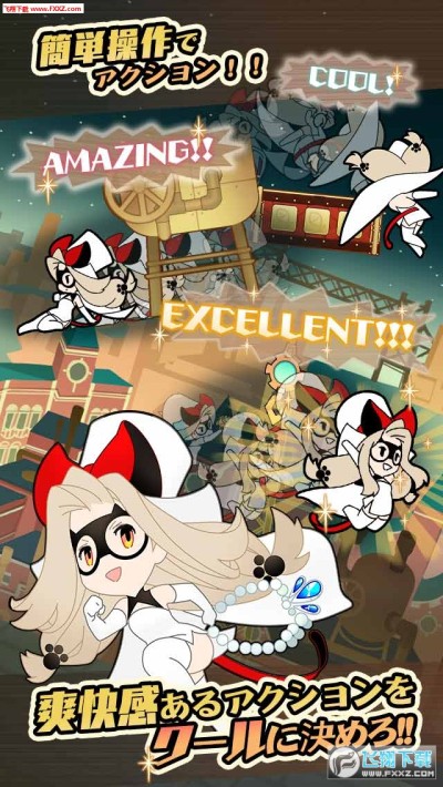 本作是一款日式的跳跃逃脱玩法手游游戏的内容非常的简单,玩家将控制我们的怪盗少女主角在动画的场景中不断的跳跃来逃脱各种障碍和追捕,游戏十分的轻松有趣。