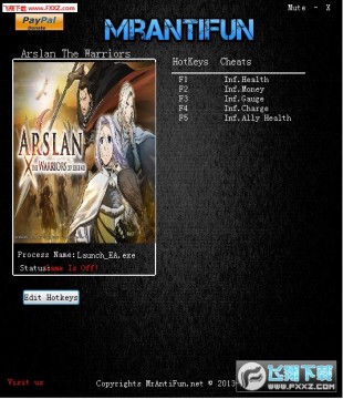 亚尔斯兰战记X无双五项修改器,由MrAntiFun基于游戏v1.0版本制作,给玩家们提供了五项功能,这些功能都比较简单,但非常实用,比如说其中的无限生命、无限金钱,玩家拥有这两个游戏就不必再担心无法过关的问题了。