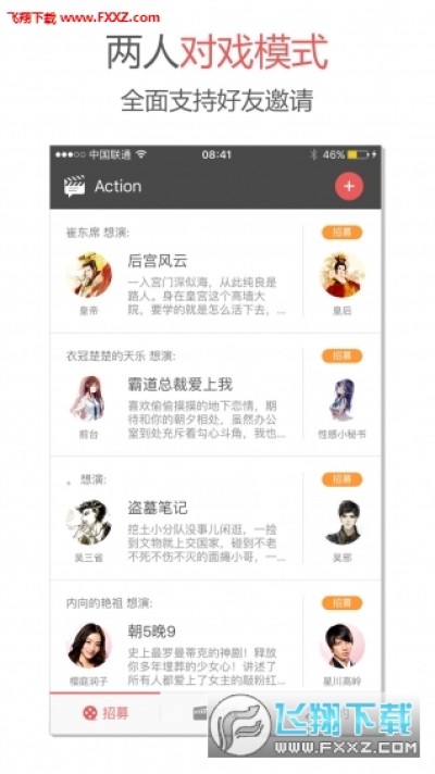 Action app,一款手机上非常有意思的社交应用,文字角色扮演神器,300多个剧本,2000多个角色,用你喜欢的角色和他人进行互动,有喜欢的朋友可以下载使用。