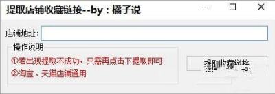 橘子说淘宝天猫店铺收藏链接提取器很简单,就是输入淘宝或天猫店铺地址直接生成店铺收藏链接,简单,方便,易用。
