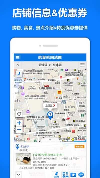 ・涵括了韩国人气美食店、购物、景点等140万个地点信息