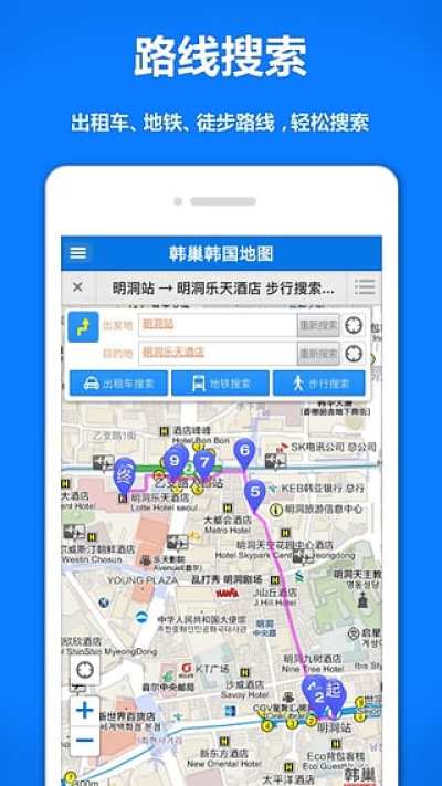 ・根据中国人习惯制作的100%中文地图,韩国自由行好帮手
