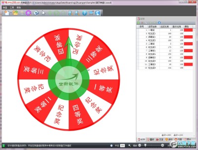 世新转盘抽奖软件是一个适合商场、超市、网吧、促销活动等使用的转盘抽奖软件,用户可以根据需要设计抽奖转盘,并可以设置每个奖项的出奖比例。世新转盘抽奖软件采用矢量图形技术设计,因此放大缩小不会导致转盘图像失真。用户可以添加文字或者图片到抽奖转盘中,并且可以任意旋转、缩放。