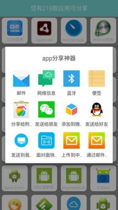 现已支持邮件分享,蓝牙分享,便签分享,朋友圈分享,QQ分享,面对面快传!更多支持,敬请期待