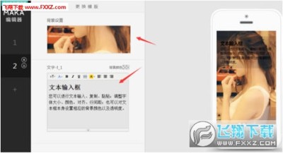 然后我们点击设置一下maka作品的背景,选择电脑本地的照片设置成背景即可,非常简单。然后我们在输入框中输入文字等。对应的右边页面手机界面就会变成我们制作后的效果了。