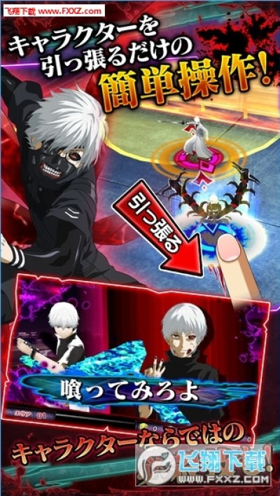 《东京食尸鬼Carnaval》 是一款即时战斗RPG。游戏采用滑动弹射类设计概念,操作易懂,手残党也足够应付自如。