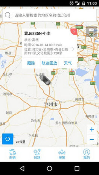 1.在线查车:随时查看车辆实时位置,定位精度最高可精确到5米以内。