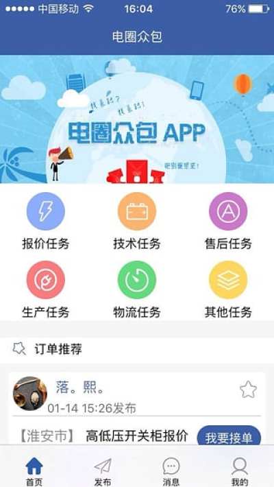 在电圈众包app中你遇到任何问题都无须烦恼,你需要做的只是发布一个任务,这里有专业并具有丰富行业经验的人立刻为你排忧解难!快速为您的企业进行高效服务。