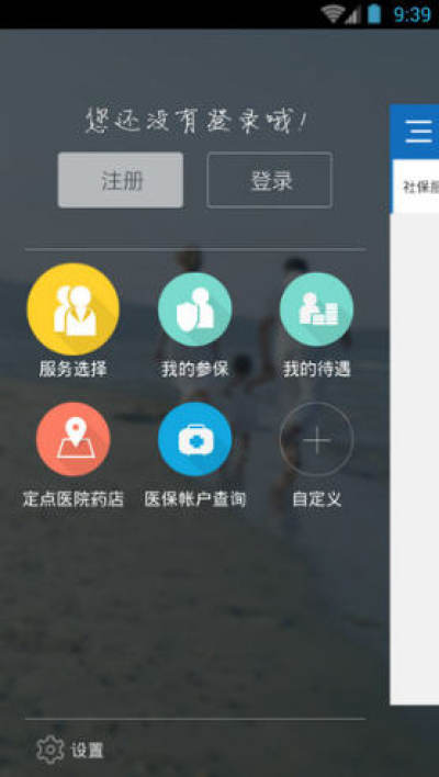 2、我的参保、我的待遇、定点医院药店、医保账户查询、自定义六个功能模块。