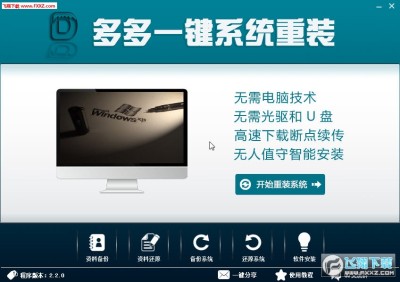 多多一键重装系统是2016全新的系统重装软件,该软件能帮助用户智能重装系统,且操作简单,无需专业安装知识,采用一键式安装模式,只需简单几步就能完成系统重装,所以就算是新手也能轻易的将系统重装完成;简单易上手,需要的朋友快下载试试吧!