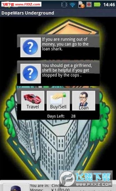 2.游戏中你的目的是在30天 内(或者60天)使用尽可能多的钱购买。游戏中你需要小心警察,同时也要警惕你的那些同行们,他们都会对你的“业务”造成很大的困扰。