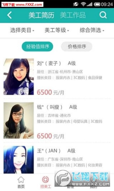 雇主可在云匠网上根据自己所属类目、招聘预算、工作年限、性别等条件对设计师进行综合筛选,也可根据设计师的作品进行筛选。