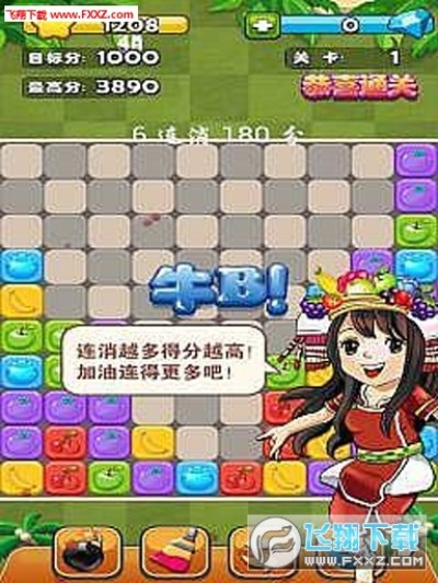 消灭水果欢乐版游戏以三消为主题,通过轻划屏幕,交换水果位置,让三个以及三个以上相同水果排在一起即可消除,跟其他消除类的游戏是类似,用三三法来消除水果,简单易上手。